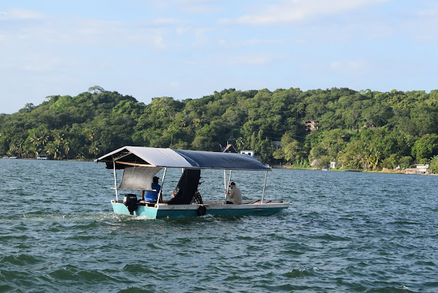 Percorremos 60 km até a cidade de Flores. Nos deixaram na ilha de Flores e disseram que nos levaria até o aeroporto às 17h. Aqui destaco a amabilidade do povo na Guatemala. Desci da van desesperada e entrei no primeiro restaurante, objetivando ir ao banheiro. Pensei que negariam, como provavelmente ocorreria em qualquer local turístico, porém disseram para eu seguir em frente - com um sorriso no rosto! Comentei com o meu companheiro nova-iorquino que no Rio não deixariam e ele respondeu "em NYC muito menos".